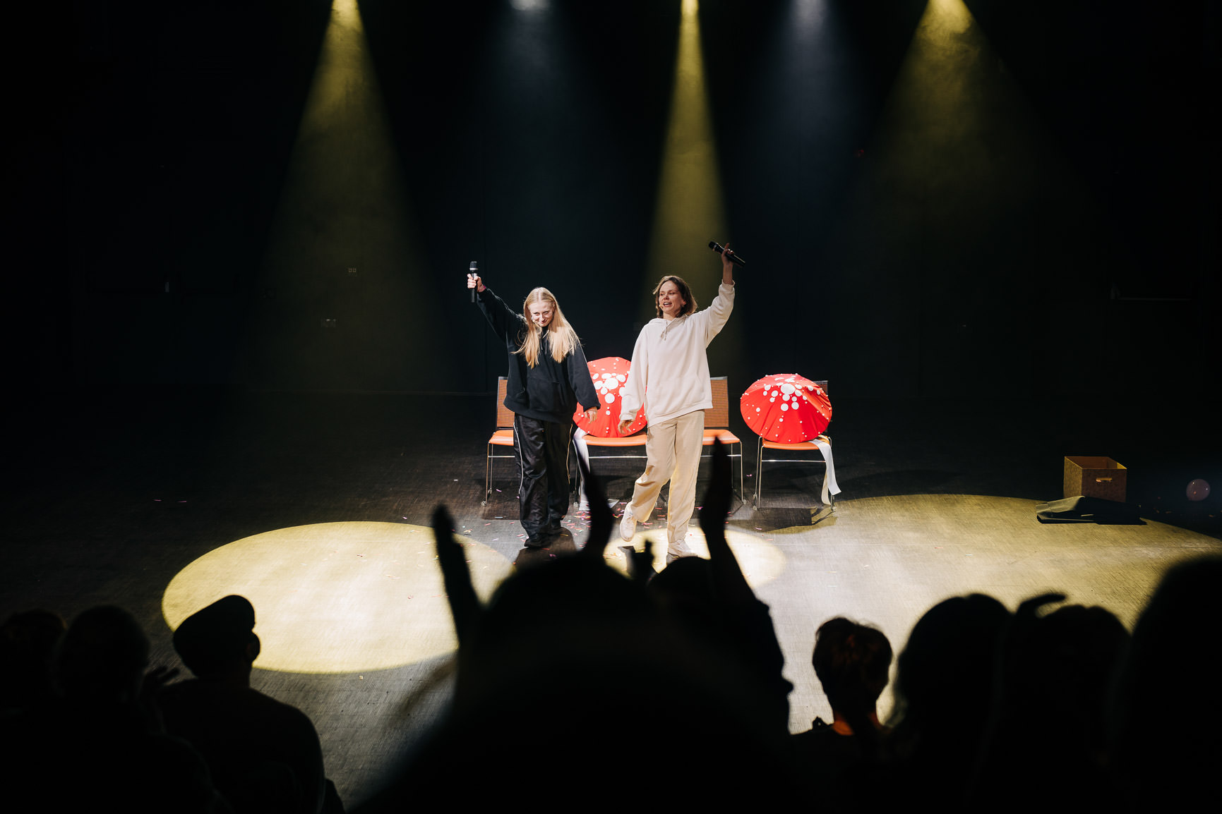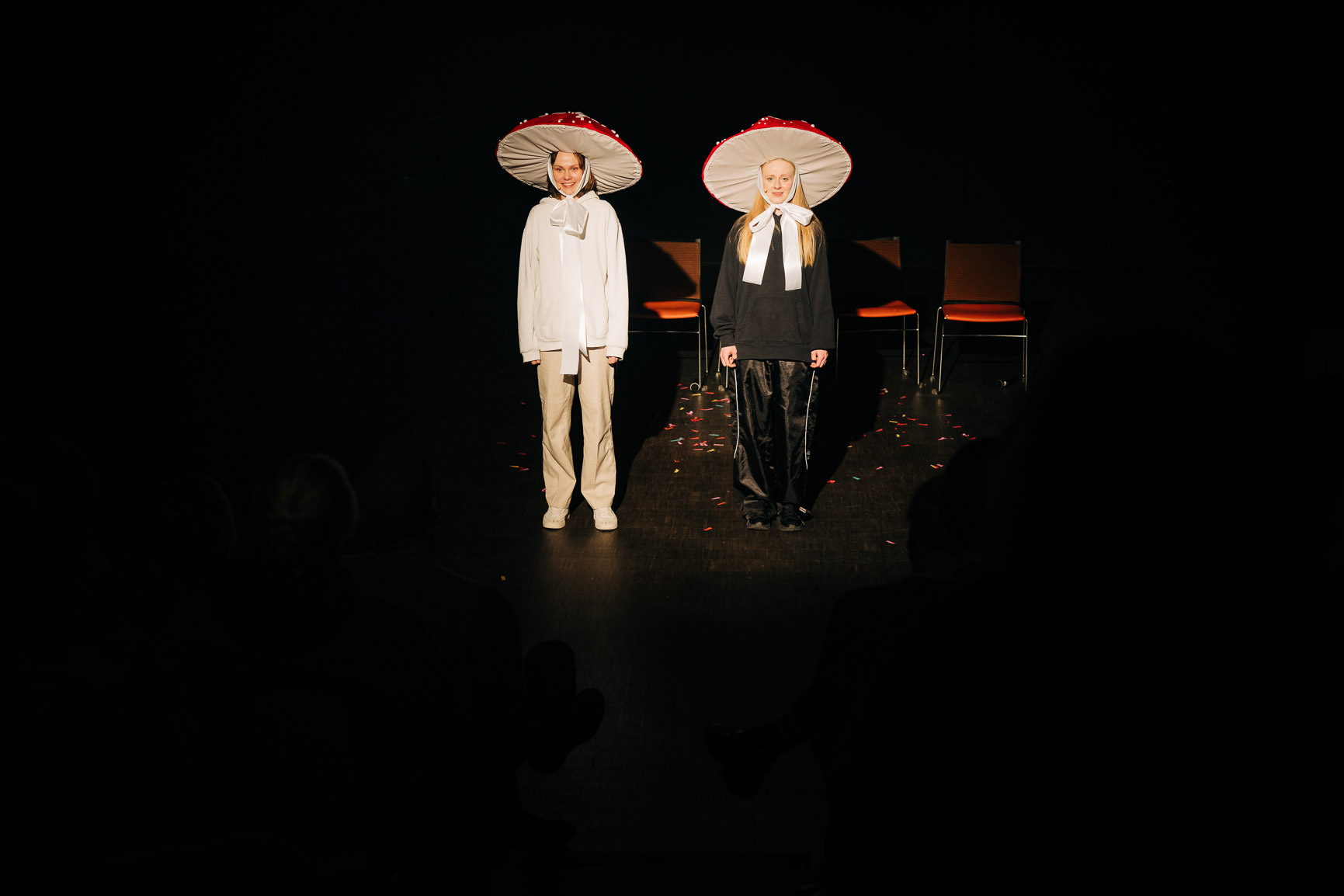 Grzybki są opowieścią o strachu i lęku, który trudno jest oswoić. O tym, że ciąża może ciążyć i być niewygodna, nie tylko fizycznie, ale przede wszystkim psychicznie. To terapeutyczne i szczere rozmowy, w których twórczynie pokazują, jak wiele silnych emocji towarzyszy przyszłym matkom. Remedium na nie jest bycie ze sobą i nazywanie tego, co trudne, niebezpiecznie i jeszcze niezbadane. Spektakl pokazuje także, że wyidealizowany obraz ciąży nie pomaga w oswajaniu nieznanego. Pomaga tylko mówienie – czasem zabawne, czasem poważne, ale oczyszczające i wytwarzające przestrzeń wspólnego przeżywania.