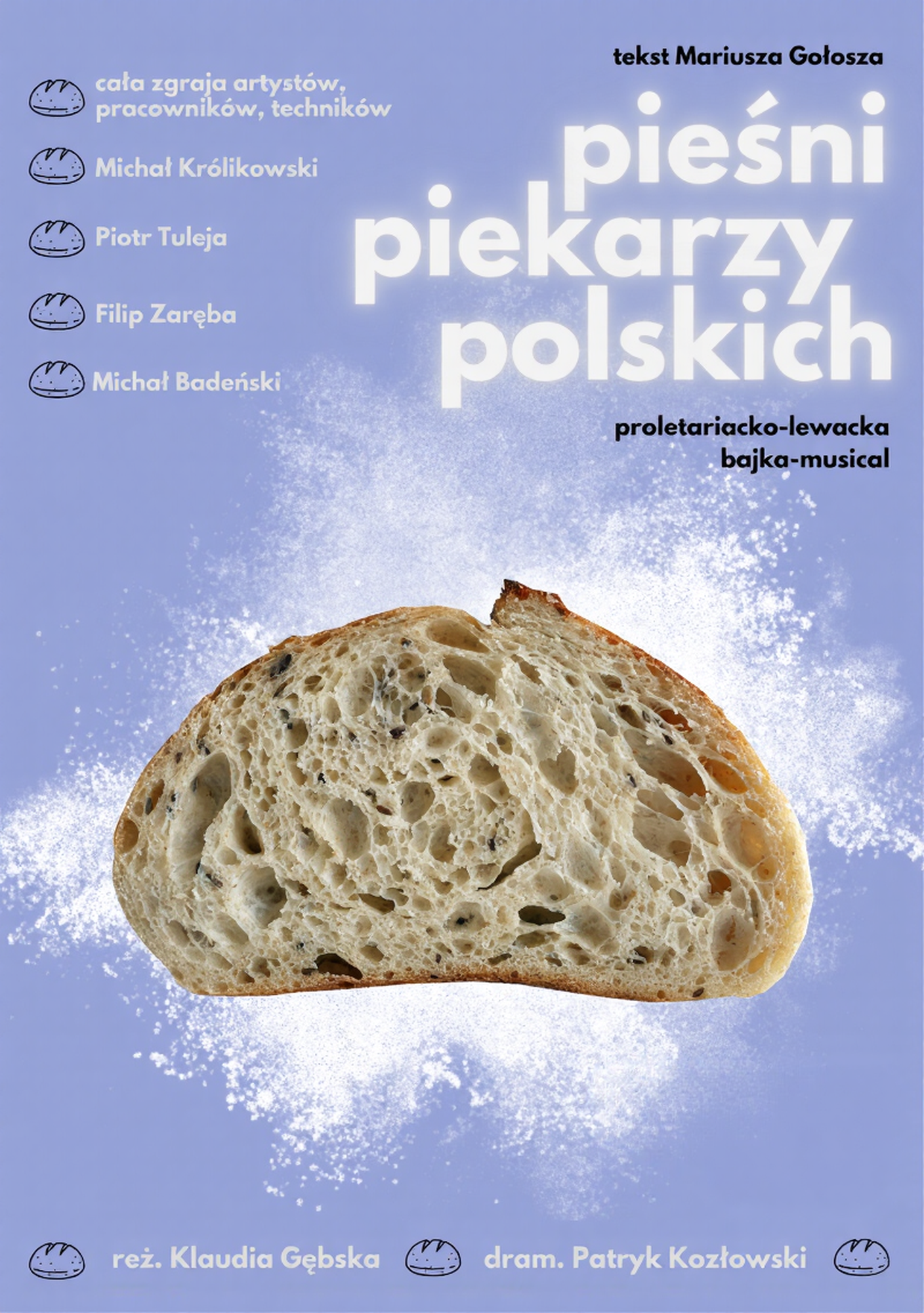 Nagrodzone na krakowskim Forum Młodej Reżyserii teatralne objawienie, zrealizowane według doskonałego, autobiograficznego tekstu Mariusza Gołosza, piekarza z kilkuletnim doświadczeniem. Rapowana opowieść o mącznym produkcie pierwszej potrzeby, który niepostrzeżenie staje się kolejnym narzędziem w wojnie klas. Na długo zapadający w ucho, pamięć oraz serce spektakl-protest, czuły wobec człowieka i bezwzględnie kąśliwy w stosunku do rozpędzonego kapitalizmu. Ma wielki potencjał jednoczenia w krzywdzie i społecznej niezgodzie na wyzysk.